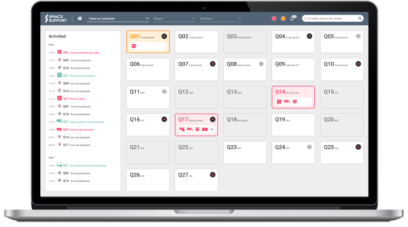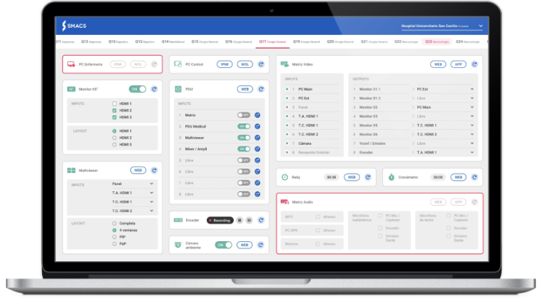 Acceso a la gestión de los dispositivos dentro de un quirófano desde el puesto del CCO (Centro de Control Operativo).